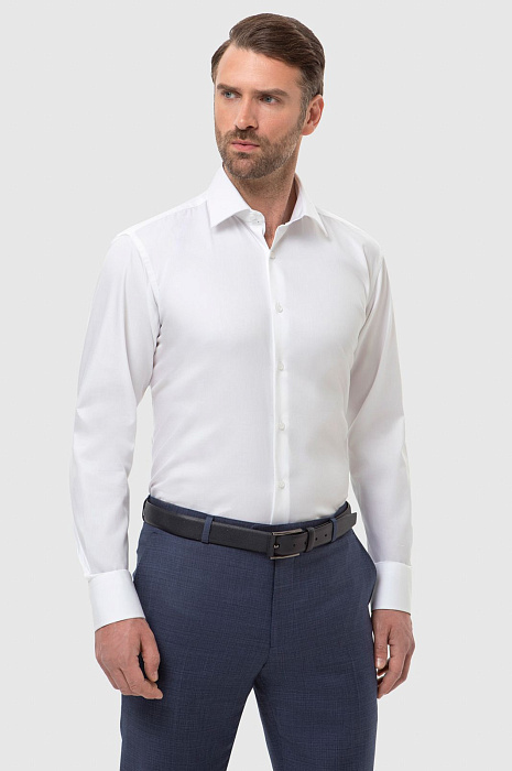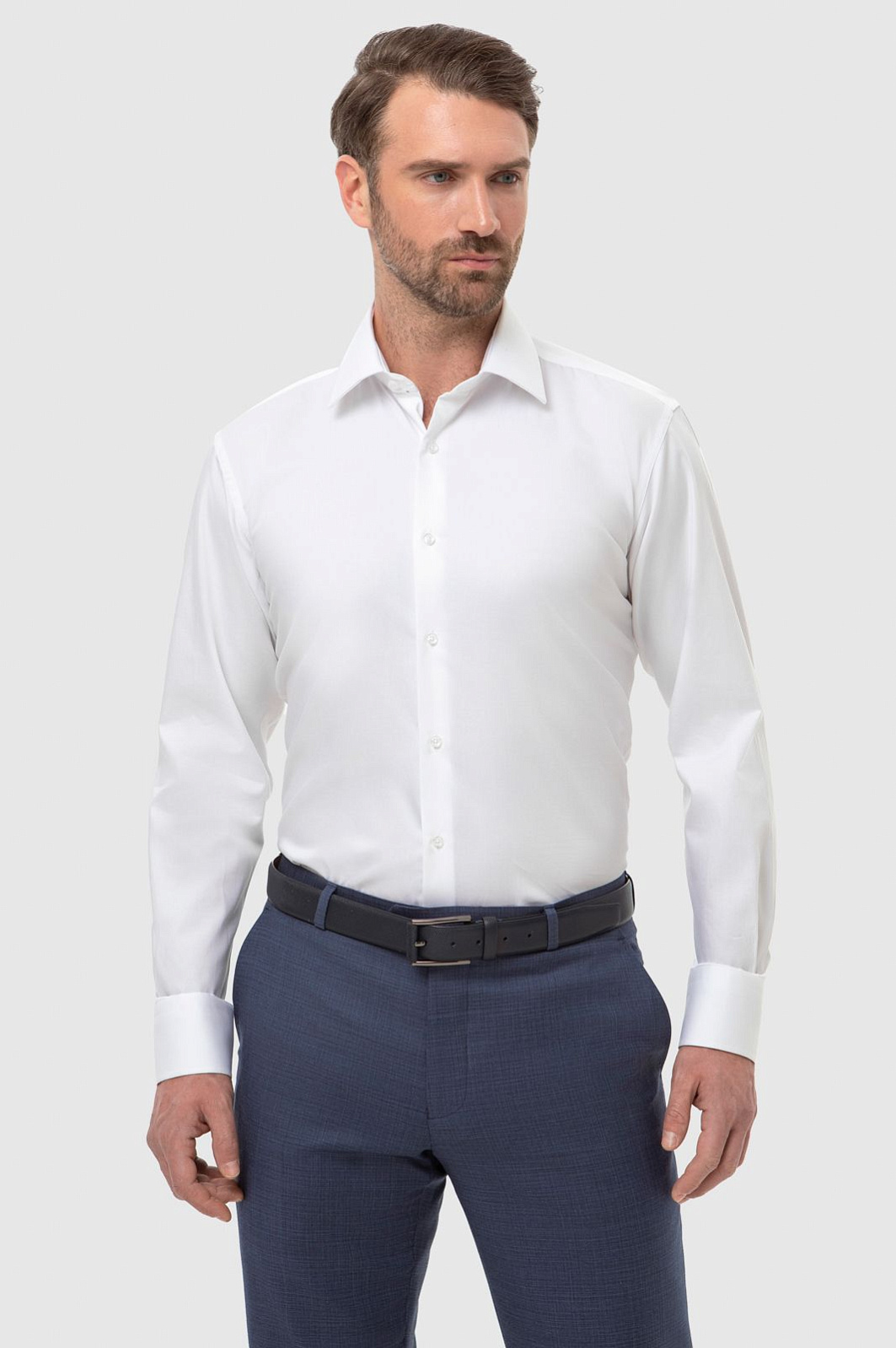 Кипенно-белая сорочка KANZLER приталенного кроя (slim fit) выглядит предельно лаконичной и элегантной. Она станет универсальным решением для вашего делового гардероба, предлагая идеальный баланс между стилем и комфортом. Изготовленная из тонких волокон премиального хлопка, сорочка обеспечивает отличную воздухопроницаемость и приятные тактильные ощущения, сохраняя при этом безупречный вид на протяжении всего дня. Тщательно выверенный крой гарантирует удобную посадку по фигуре, а классический рубашечный воротник, лаконичная фурнитура и манжеты на пуговицах делают сорочку подходящей для любых формальных мероприятий, офиса или важной встречи. Базовая белая рубашка легко комбинируется с костюмами, галстуками и различными аксессуарами и позволяет создавать разнообразные сочетания.