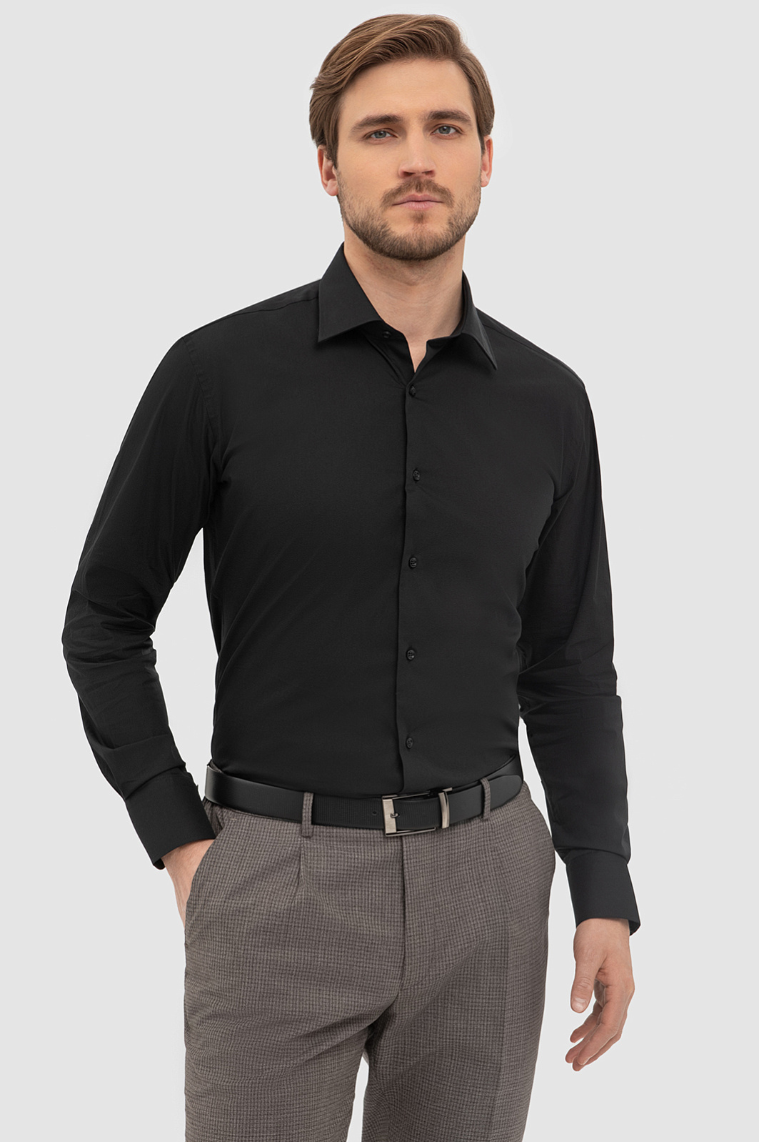 Сорочка из хлопка, устойчивая к сминанию, цвет черный, цена 6 990 руб., код 267275 - купить в Красноярске в интернет-магазине KANZLER