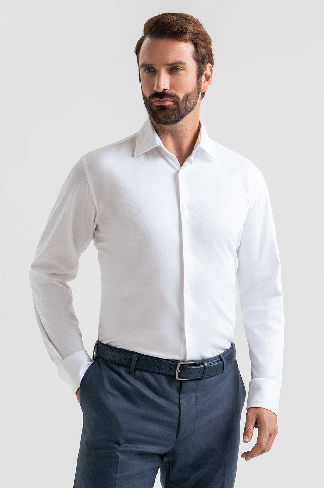 Простота может быть синонимом элегантности, и белая сорочка KANZLER из 100-процентного хлопка тому подтверждение. Трикотаж из хлопка привносит в строгие деловые образы мягкость, которая подчеркивает неоднозначность и глубину мужской натуры. Благородная натуральная ткань следует линиям тела, подчеркивая достоинства фигуры. Чистый гипоаллергенный хлопок — находка для чувствительной кожи. Воздухопроницаемая структура материала сохраняет свежесть и поддерживает приятную для тела температуру весь день. Параметры модели: рост 189, 102-80-99 Размер на модели: 40
