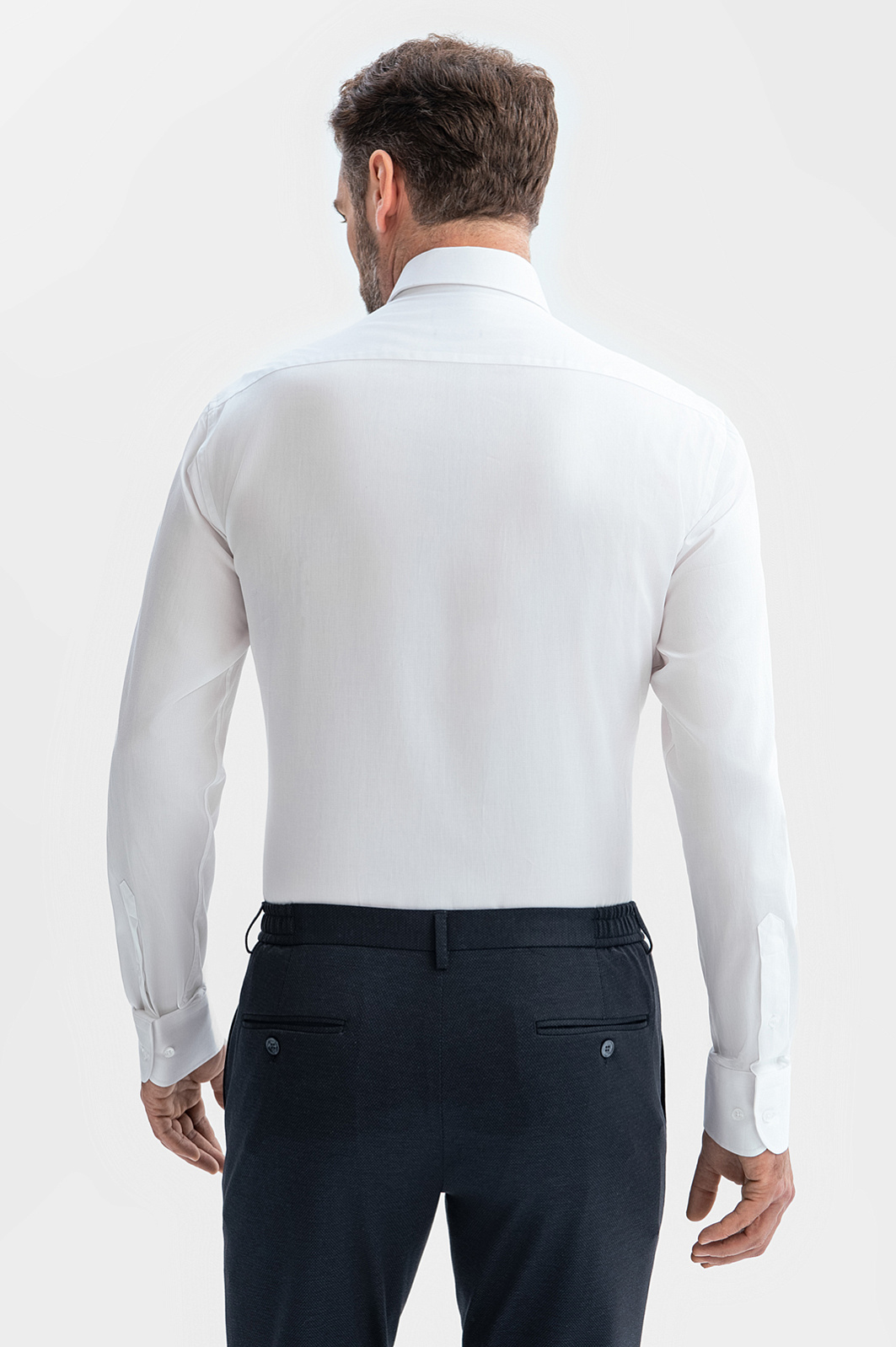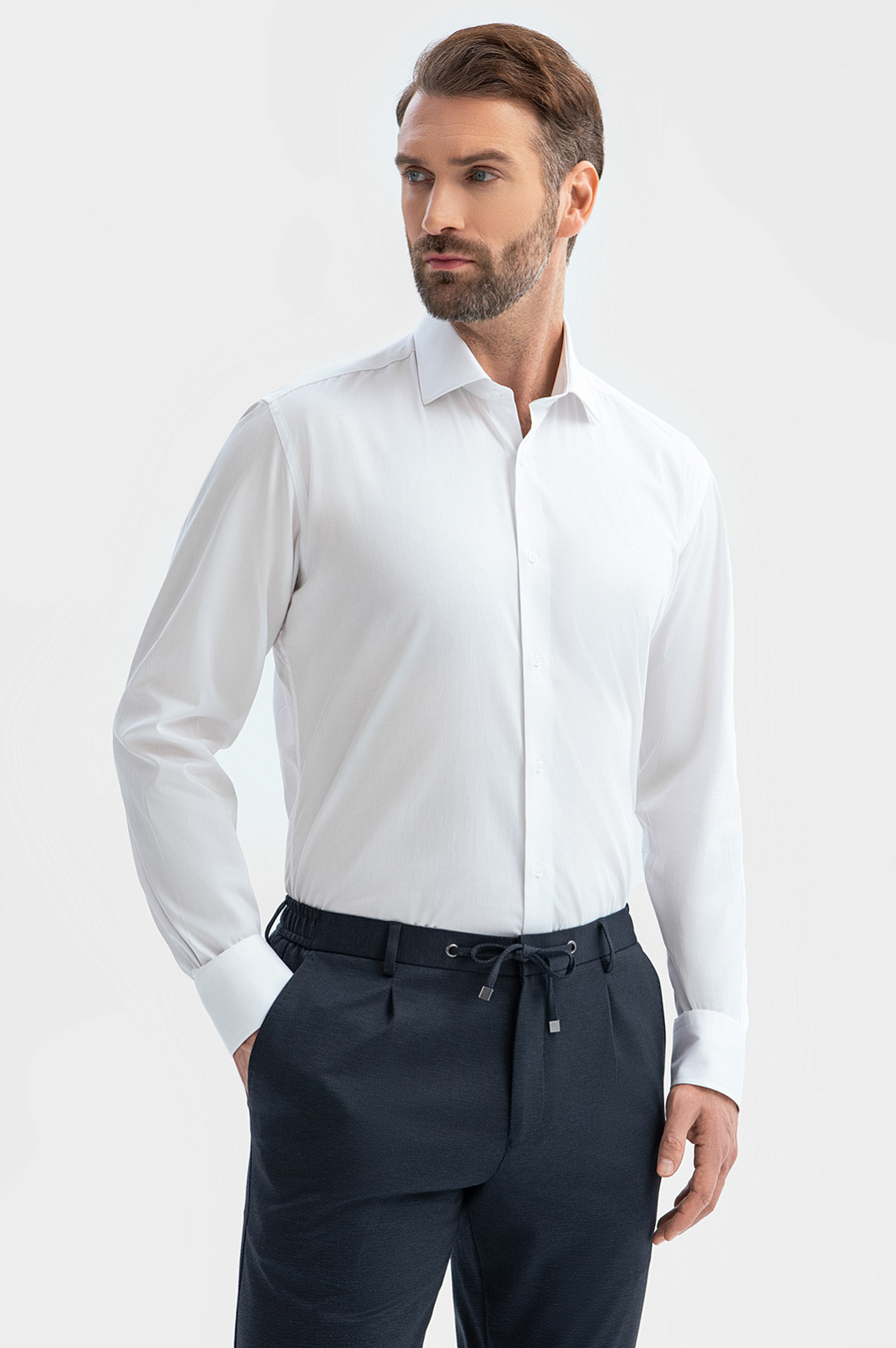 Белая сорочка KANZLER из хлопка с защитой от пятен позволит с достоинством принять все вызовы дня. Классическая базовая вещь уместна в абсолютном большинстве сочетаний и случаев — торжественных, деловых и повседневных. Облегающий крой подчеркивает достоинства мужественной фигуры. Легкая дышащая ткань из 100-процентного хлопка обеспечивает приятные тактильные ощущения и комфорт в течение всего дня. Натуральный материал выглядит всегда аккуратно. Секрет его безупречности — в специальной обработке, которая наделяет ткань дополнительной суперсилой — устойчивостью к загрязнениям.