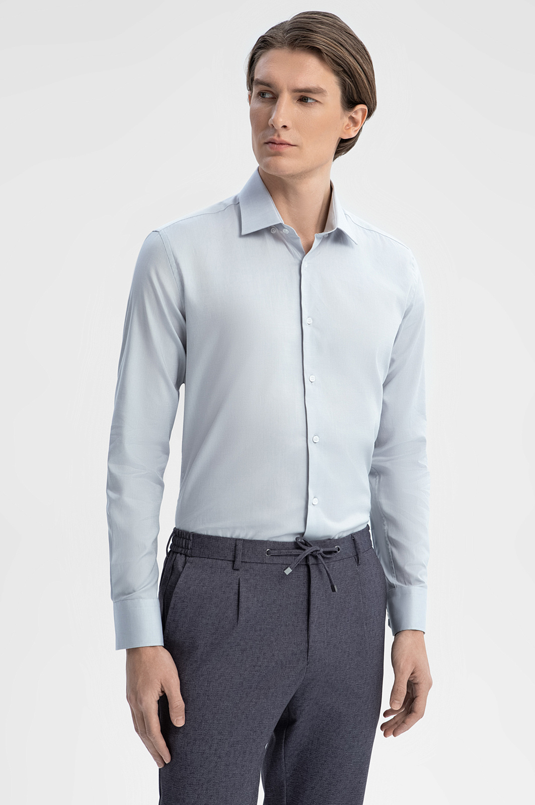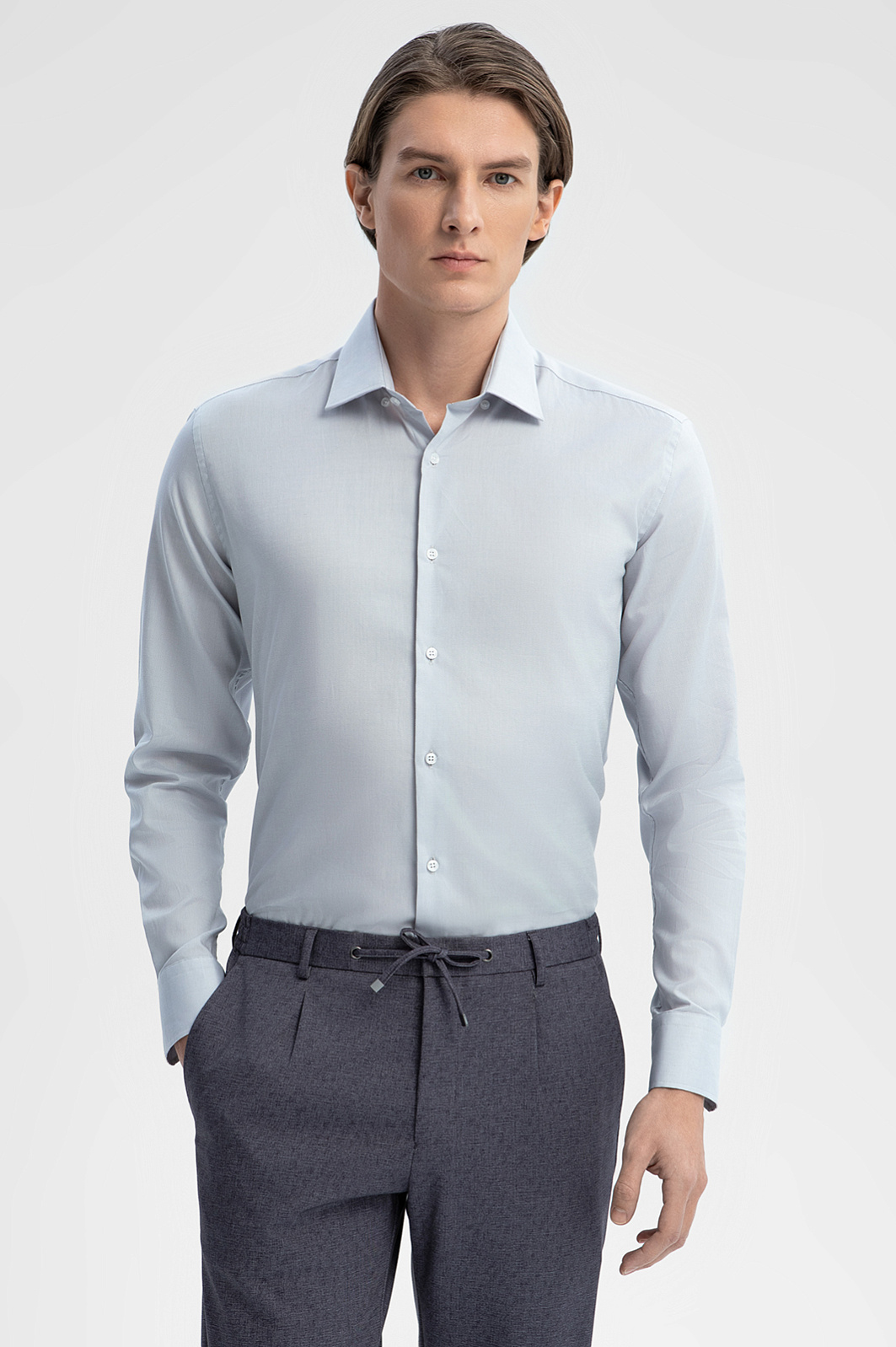 Серая сорочка KANZLER выполнена из австрийской ткани Getzner, известной своим непревзойденным качеством и долговечностью. Натуральный гипоаллергенный 100% хлопок обеспечивает мягкость и комфорт, которые сопровождают вас на протяжении всего дня. Материал сохраняет свои превосходные качества даже после многочисленных стирок. Приталенный крой изящно подчеркивает силуэт, не сковывая движений. Сорочка станет идеальным выбором как для деловых переговоров, так и для более непринужденных мероприятий, гарантируя, что ваш образ всегда будет на высоте. Параметры модели: рост 191, 97-77-99 Размер на модели: 40