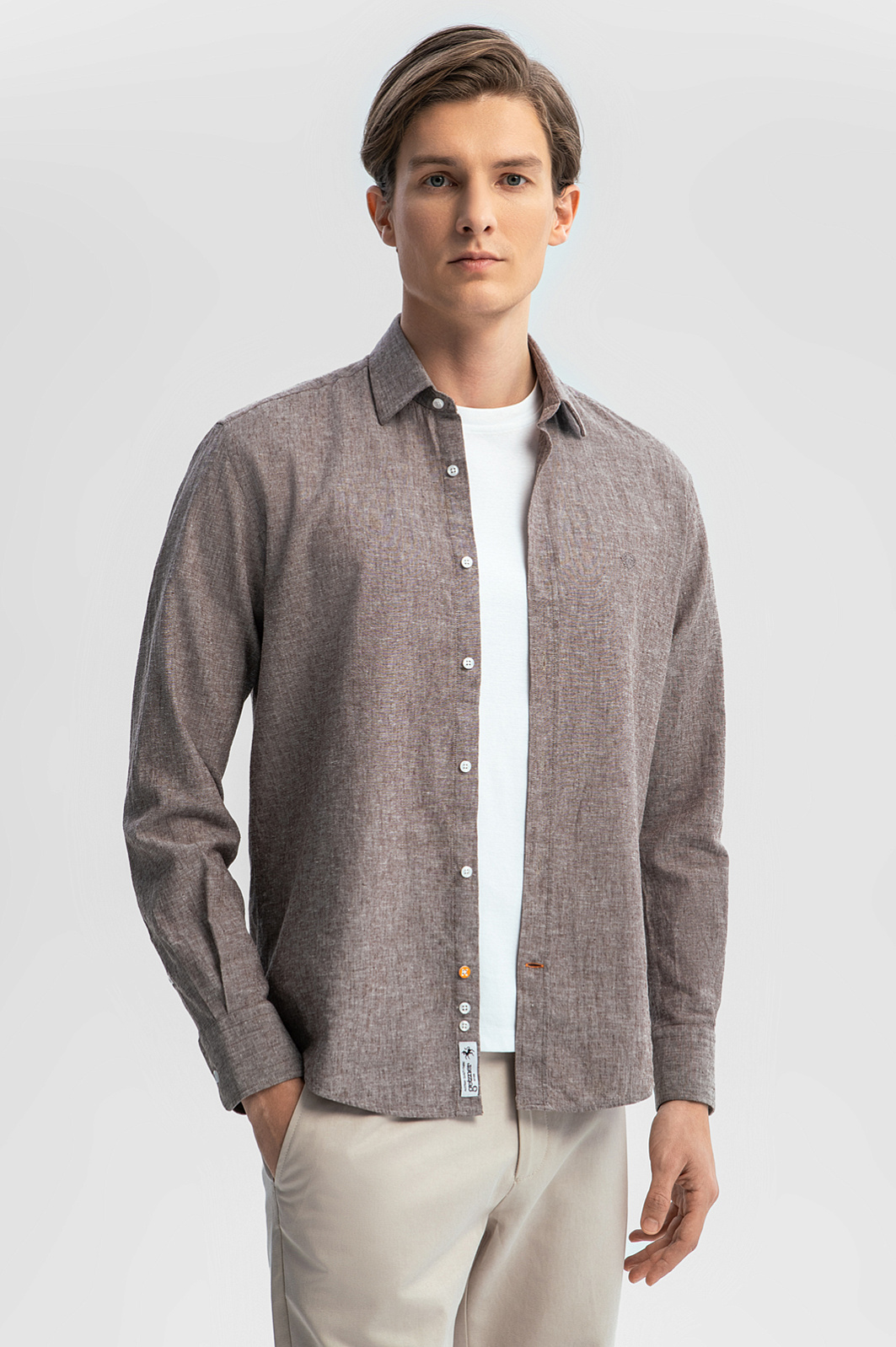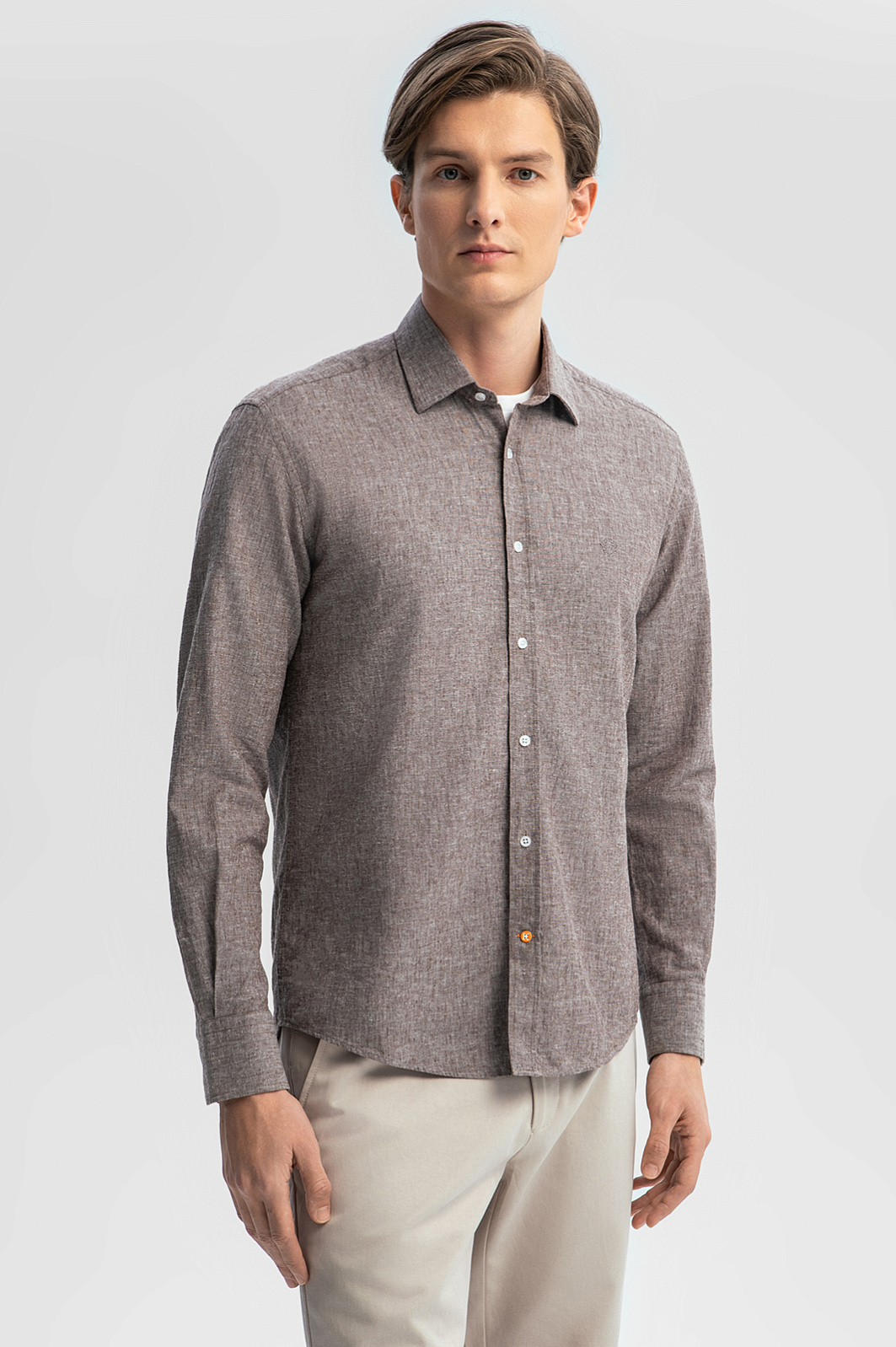 Стильная сорочка KANZLER изо льна и хлопка сшита из роскошной ткани Getzner (Австрия). Полотняное переплетение материала создает красивый меланжевый эффект. Модель сочетает классический крой и небольшие акцентные детали — фирменная вышивка на груди, выделяющаяся в общем ряду нижняя пуговица. Свободная степень облегания — залог комфорта и хорошей посадки. Сорочку изо льна и хлопка можно носить в любую погоду. Ткань из натуральных гипоаллергенных волокон поддерживает оптимальную для тела температуру. Лен создает ощущение прохлады в жаркий день. Хлопок обеспечивает легкость и воздухопроницаемость ткани. Параметры модели: рост 191, 97-77-99 Размер на модели: 40