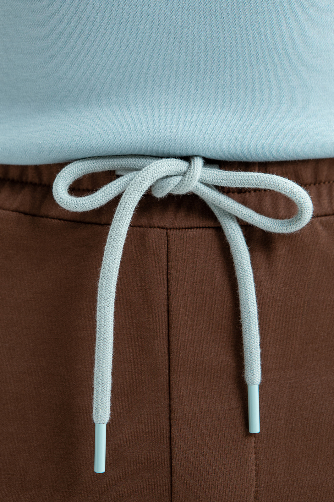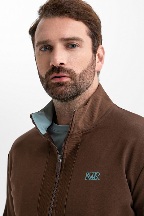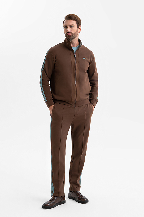 Коричневый спортивный костюм KANZLER из хлопка с голубыми деталями отлично подойдёт для прогулок, путешествий и активного отдыха, сочетаясь с кроссовками или кедами. Контрастные вставки придают комплекту свежесть, создавая современный лаконичный образ. Костюм составлен из толстовки на молнии, украшенной фирменной вышивкой на груди, и джоггеров, которые можно регулировать с помощью шнурка на поясе. Застроченные стрелки спереди и лампасы по бокам задают вертикальные линии, которые делают силуэт стройным и подтянутым. Натуральный гипоаллергенный хлопок, на основе которого произведён трикотаж, можно носить весь день. Он хорошо пропускает воздух и приятен к телу, а добавление синтетических волокон помогает ему держать форму и сохранять безупречный вид.