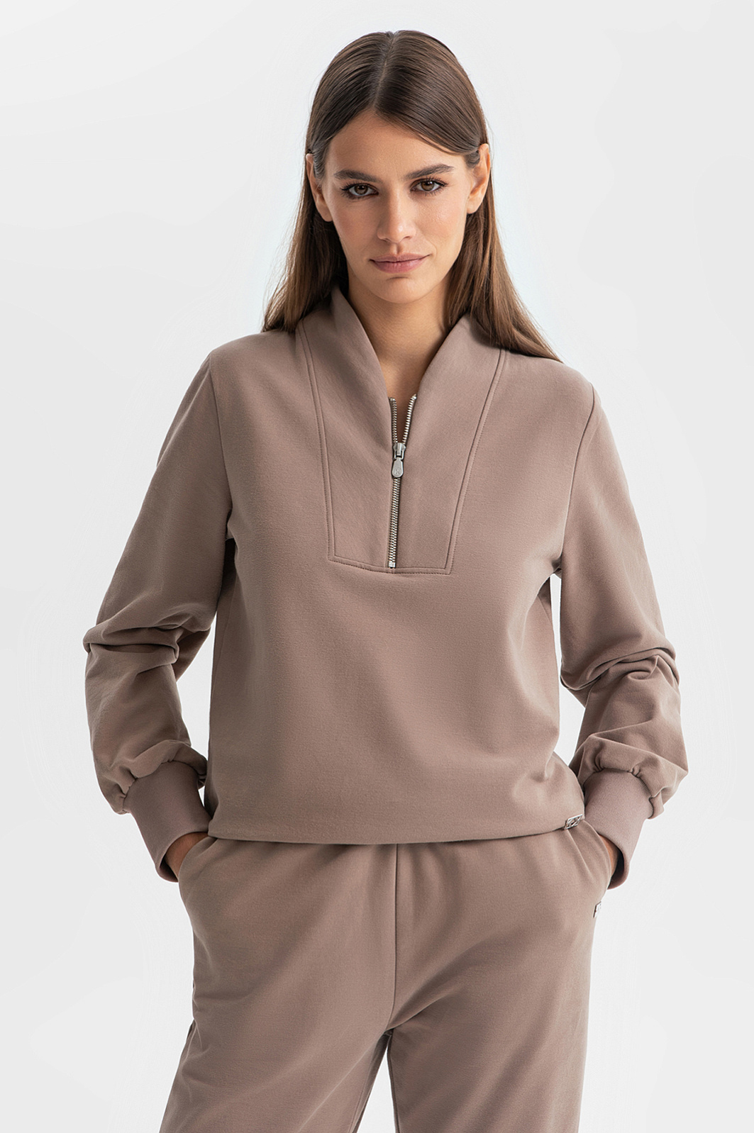 Толстовка из хлопка утепленная с начесом, цвет мокко, цена 6 990 руб. - купить в интернет-магазине KANZLER