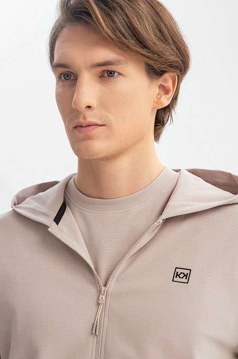 Светло-бежевая толстовка KANZLER из хлопка на молнии с капюшоном — универсальная одежда, в которой можно с удовольствием провести уик-энд — отдохнуть и восстановить силы в спа-отеле, на курорте и дома. Небольшим акцентом служит логотип на груди. Комфорт обеспечивают спортивный свободный крой и мягкий эластичный трикотаж из хлопка. Воздухопроницаемый гипоаллергенный хлопок (95%) не раздражает даже самую чувствительную кожу. Небольшое добавление спандекса помогает материалу держать форму. Для создания комплекта модель можно дополнить светло-бежевыми брюками KANZLER. Параметры модели: рост 191, 97-77-99 Размер на модели: M